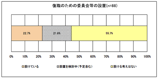 具体的には、相談窓口の設置(8割)、外部専門機関の活用(6割)とのこと。